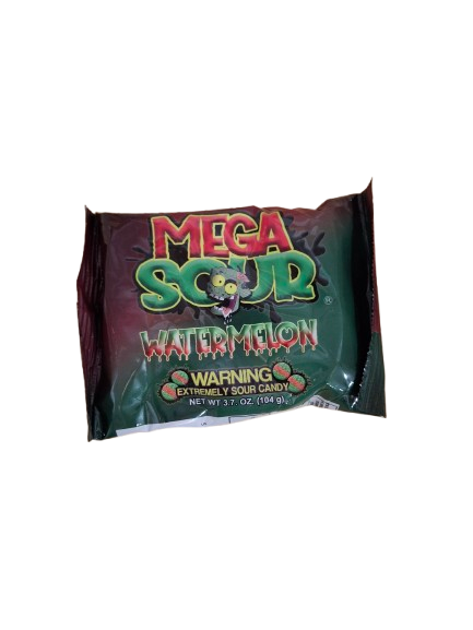 Barnetts Mega Sour Watermelon hard candies, a candy renowned for its extreme, mouth-puckering sour coating that lasts for approximately 20 seconds before giving way to a sweet, juicy watermelon flavour.