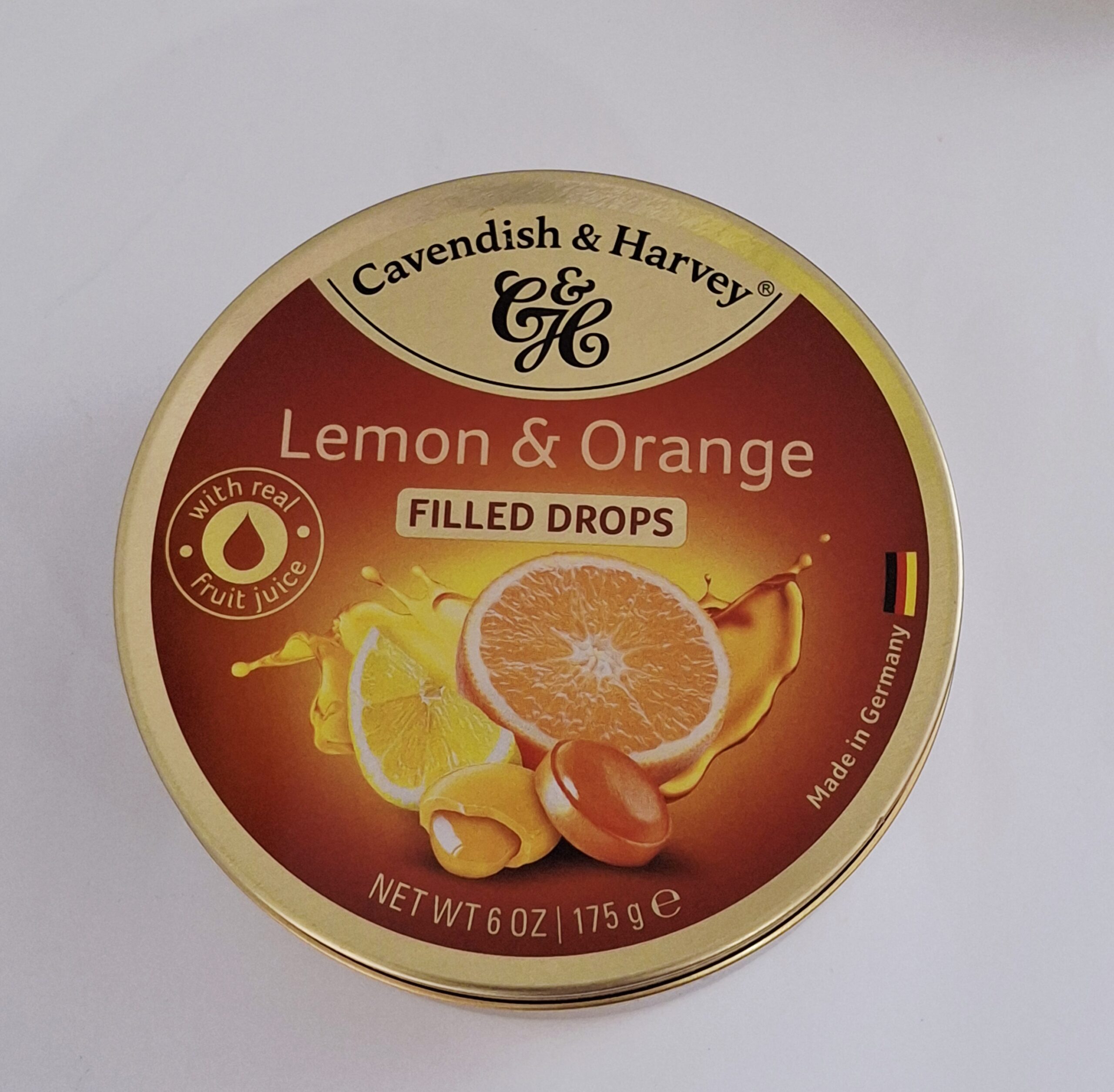H&C Confectionery for Connoisseurs. Fruit Drops, Lemon and Orange filled.