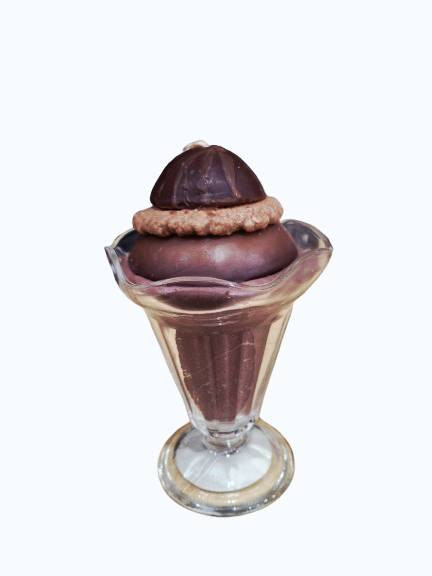 For chocolate lovers! Set this decadent candle next to your tub, on your office desk or anywhere you enjoy sweet scents! Sweet chocolate scent, comes in a reusable glass sundae cup.