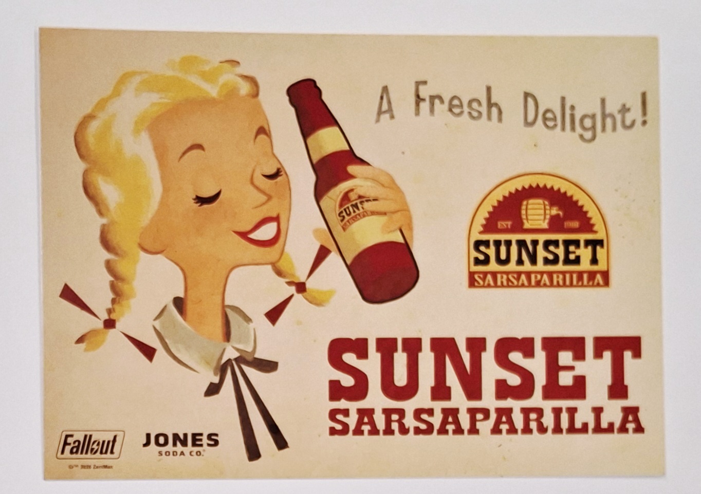 Limited edition! Sunset Sarsaparilla is a delightful blend reminiscent of traditional root beer with a hint of citrus, inspired by the incredible world of fallout.