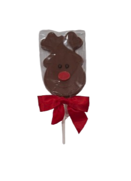 anDea. Milk chocolate Reindeer pop with a red nose. Perfect for gift giving!