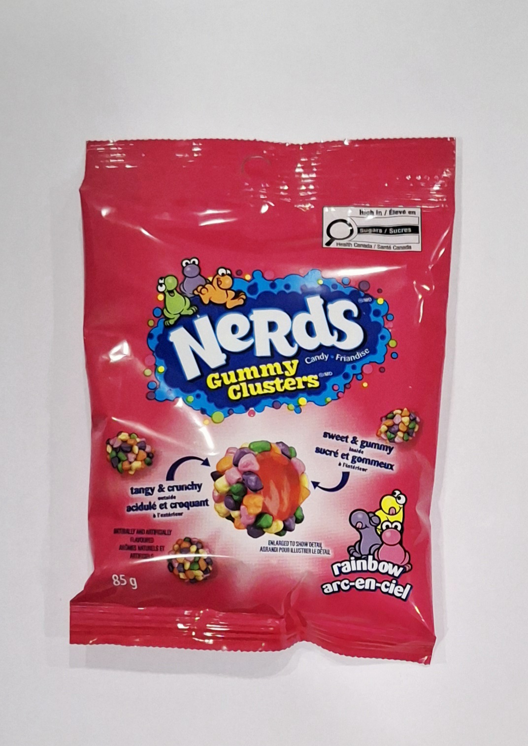 Wonka Nerds Gummy Cluster. Soft chewy gummy on the inside, nerds on the outside.