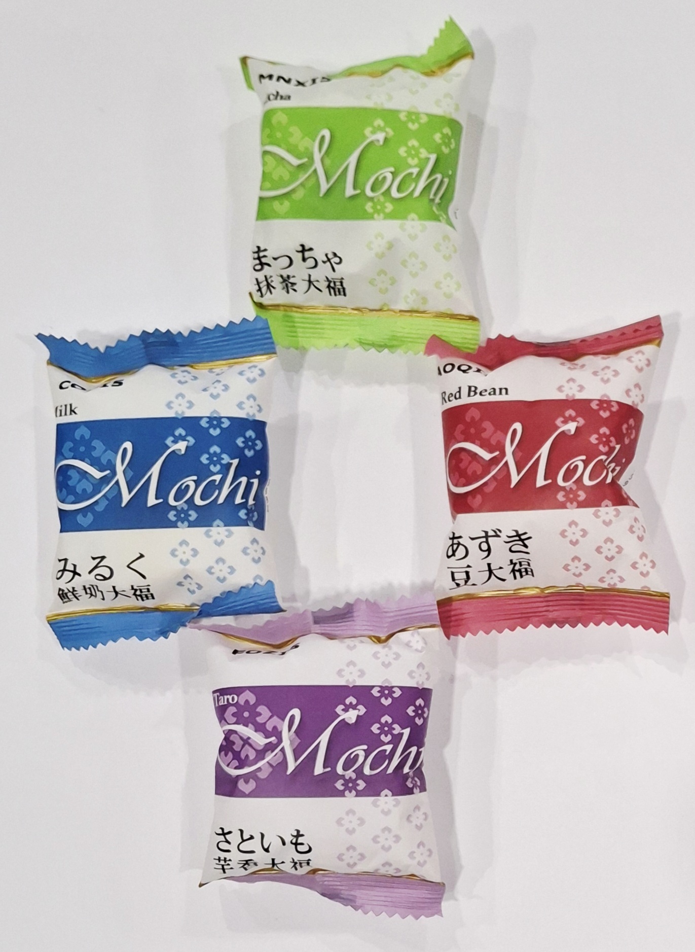 Soft and Chewy, these mochi rice cakes come in 4 flavours, Red Bean, Milk, Matcha and Taro.