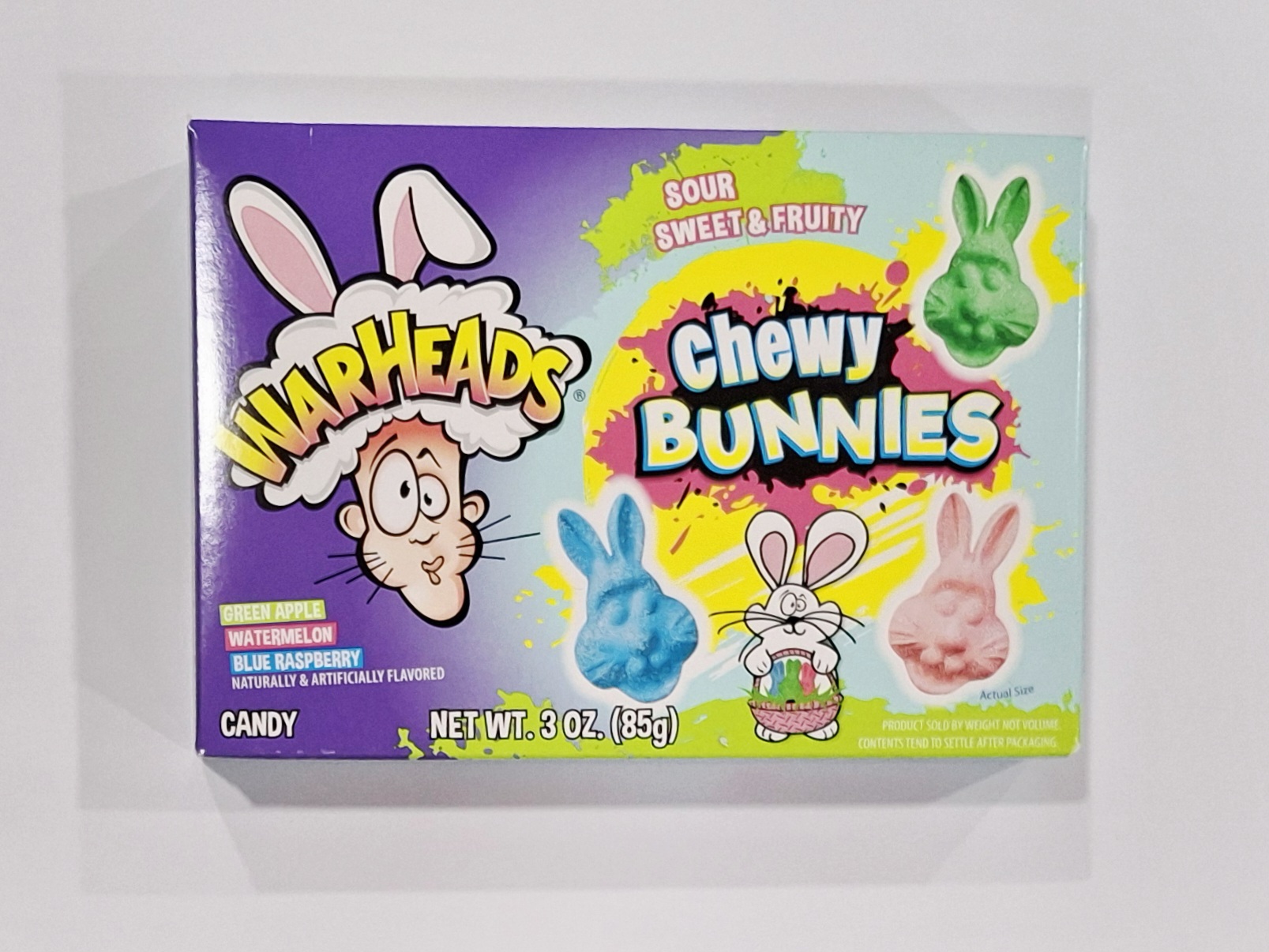 Warheads Chewy Bunnies, soft, gummy, bunny-shaped treats with a signature sour, sugary coating. They deliver an initial, intense “pucker” effect that transitions into a sweet, fruity flavour.