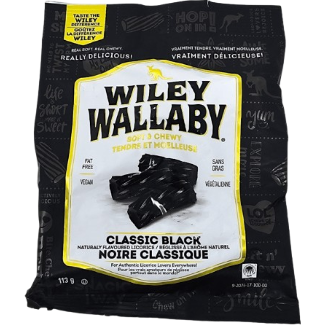 Indulge in the rich, classic taste of licorice with Wiley Wallaby Licorice Black! These extra-soft and delightfully chewy gourmet licorice pieces offer a satisfyingly sweet and smooth experience. Perfect for snacking, sharing, or satisfying your licorice cravings right here in Canada!